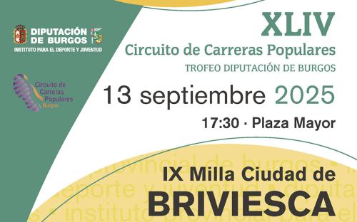 La capital de La Bureba vivirá el próximo sábado 13 de septiembre una de las citas clásicas de su calendario deportivo con la celebración de la IX Milla Ciudad de Briviesca, incluida en el XLIV Circuito Provincial de Carreras Pedestres Populares que organiza el Instituto Provincial para el Deporte y Juventud de la Diputación de Burgos.
