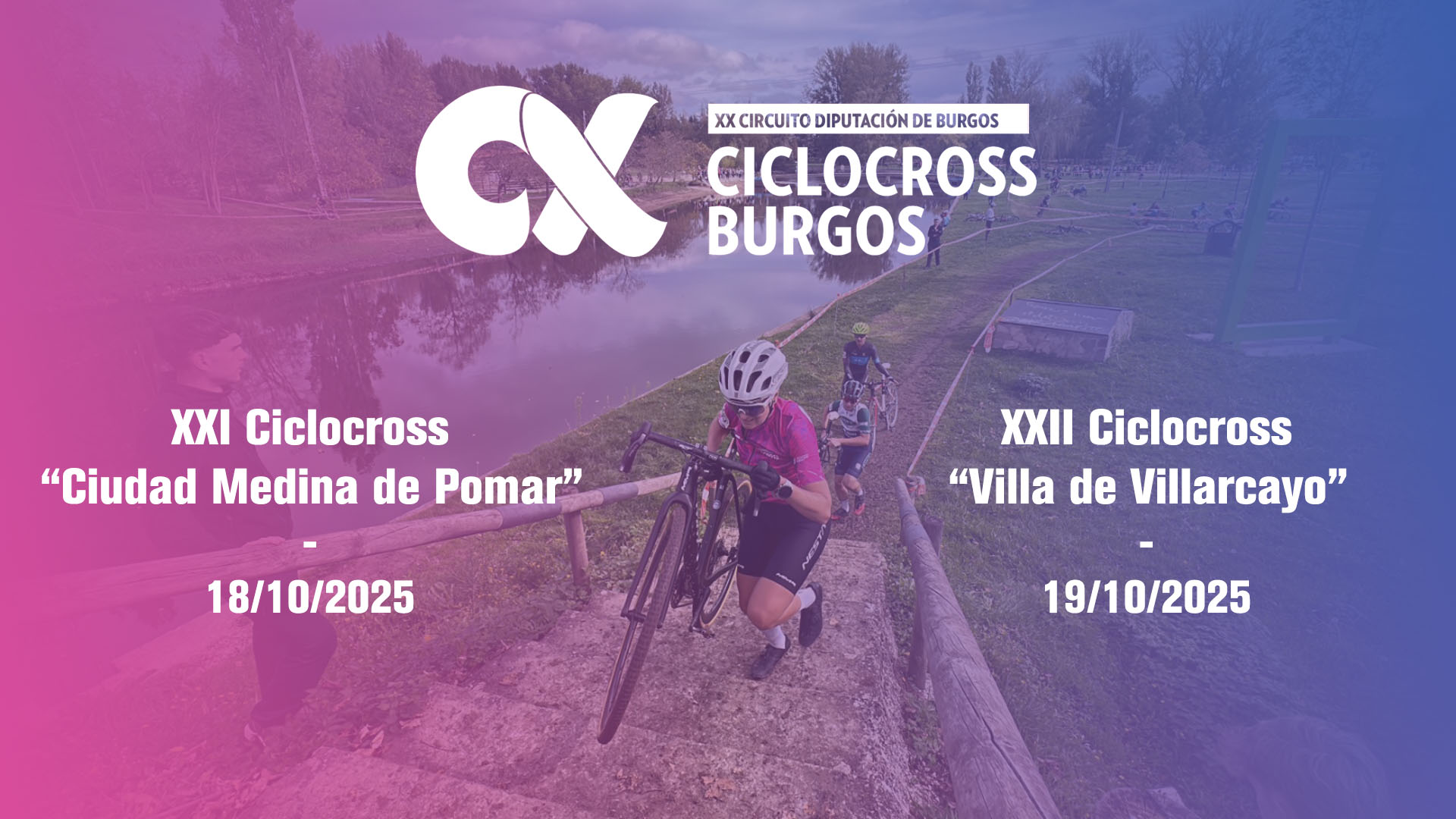 El Instituto Provincial para el Deporte y Juventud (IDJ) de la Diputación de Burgos celebra este fin de semana una nueva edición del Circuito Diputación de Burgos de Ciclocross, que alcanza ya su vigésimo aniversario. El certamen constará de dos pruebas puntuables, el XXI Ciclocross “Ciudad Medina de Pomar”, el sábado 18 de octubre, y el XXII Ciclocross “Villa de Villarcayo”, el domingo 19. La suma de los puntos obtenidos en ambas jornadas decidirá los campeones de cada categoría.