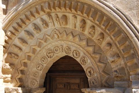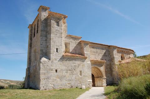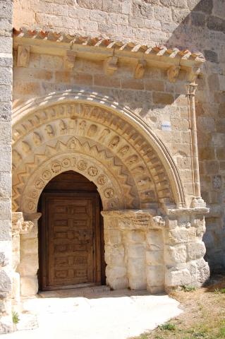 Miñon se nos aparece en un alto, a la derecha presidido por su iglesia, donde para muchos se encuentra la joya artística del valle: su portada románica. La primitiva iglesia fue construida a finales del siglo XII o principios del XIII, como se deduce por la portada conservada en su fachada sur, con arcos apuntados. El arco interior, quizá el más interesante desde el punto de vista iconográfico, presenta doce relieves circulares que quieren representar los signos del Zodíaco, reconociéndose los correspondientes signos de Leo, Virgo y Sagitario. El relieve central aparece conrtado, al estar dispuestas las dovelas en arco apuntado. Un arco de carnosas hojas separa esta primera arquivolta de la segunda, con un grueso zig-zag y un ave bajo el ángulo de la dovela central. La tercera arquivolta lleva figuras de músicos y acróbatas, cerrando el último arco que va adornado con gruesos dentellones cobijados por una moldura que cierra la portada. Los capiteles sobre los que se asientan las arquivoltas, muy deteriorados y amputados al empotrarse en la portada un grueso contrafuerte, presentaban decoración vegetal -carnosas hojas como en la primera arquivolta - y aún pueden verse representadas dos sirenas cogiéndose las colas en uno de ellos. Sobre la puerta corre un tejaroz adornado con canecillos simples. La iglesia está dedicada a San Pedro y en su interior luce un retablo barroco de finales del siglo XVII, trazado por Policarpo de la Nestosa y realizado por José de la Torre y Marcos Recio. El retablo dedicado al Santo Cristo, realizado a principios del siglo XVII, la imagen principal es renacentista. El pueblo del Miñón se desparrama por la falda de la cuesta. Conocido como Miñón de Santibánez, sus orígenes se remontan al siglo XI; según un documento del Monasterio de Oña del año 1041, con el nombre de Mingón.
